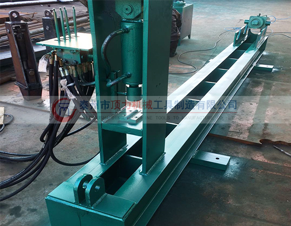 系統主要由主機、液壓泵站、操作臺等組成。因為采用了分體式結構,即主機、液壓泵站、操作臺為獨立結構,互不影響,使操作變得更加an全方便。主機主要有底座、錨桿夾緊裝置、主液壓缸、錨桿壓直液壓缸等部分組成。工作原理:把彎曲錨桿兩頭壓直。根據錨桿長度調整主液壓缸伸出行程,把兩頭壓直的錨桿放在夾緊裝置的卡頭內,推動夾緊裝置上的小液壓缸,把錨桿的兩頭夾緊,然后推動主液壓缸操作閥,主液壓缸回縮拉直錨桿,操作液壓閥,主液壓缸停止工作?;乜s夾緊裝置上的小液壓缸,帶動卡頭松開錨桿,取出調直的錨桿。